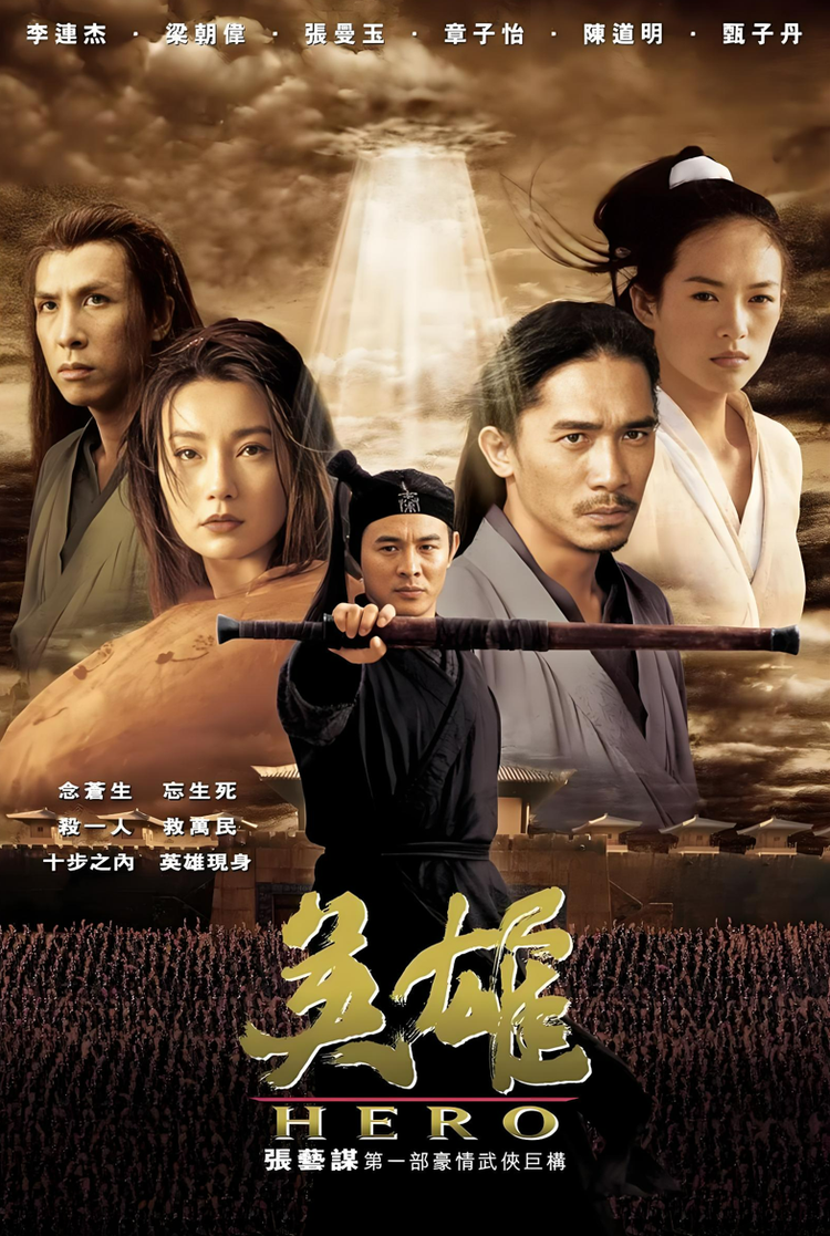 让我们回到2003年,张艺谋的《英雄》应该算是国内真正意义上的第一部商业大片。这部电影因为拿到了米拉麦克斯1500-2000万美元的版权买断,所以投资了当时堪称天文数字的3000万美元(约合2.6亿人民币)来制作。当时这部电影几乎集齐了华语电影所有的高热度演员——李连杰、梁朝伟、张曼玉,还有陈道明、甄子丹这样的配角,章子怡甚至都只能算个不起眼的角色。