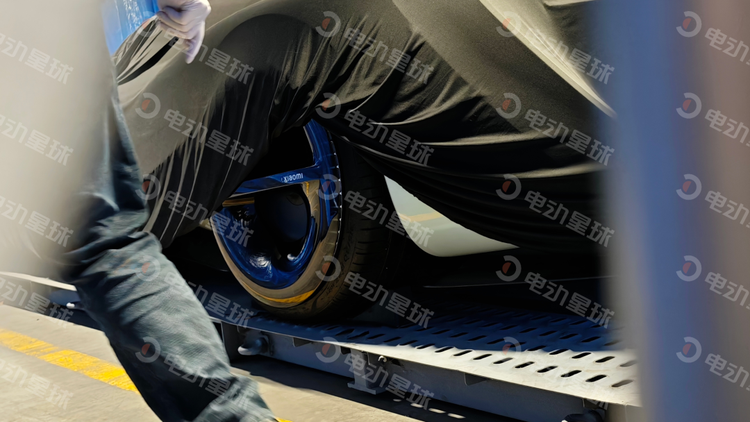 根据海外媒体 ChinaEV Home 公布的图片可以看到,这款疑似小米的新车型被厚重的黑色车衣覆盖,仅露出后轮与轮眉一角。后轮轮圈印有「xiaomi」字样,大概率与小米品牌有关联。