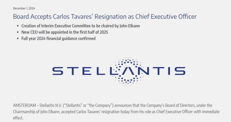 2024年上半年Stellantis拿出了一份净利润近乎腰斩的财报,随后集团董事会甚至等不及看到全年财报,迫不及待就在当年12月请离了唐唯实——