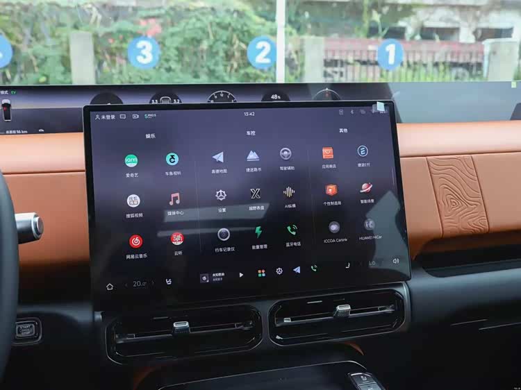 再看日常城市通勤场景,这也是很多硬派越野车型的通病,不过纵横G700这次在日常实用性方面也是确实下了功夫。上车第一眼,全系标配的35.4英寸贯穿天际屏,搭配高通骁龙8255芯片,车机流畅度不输主流城市SUV,堵车时切歌、更换导航都非常流畅,所以谁再说硬派越野都是“糙汉式”车机?纵横G700第一个不答应!