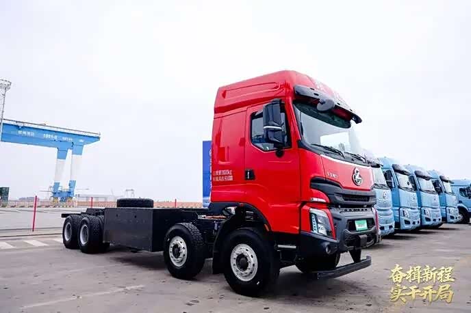 商用车乘龙品牌本次推出乘龙翼威5新能源牵引车,集安全、舒适、节能、轻量化四大核心价值于一身,凭借高强度安全车身、舒适驾乘配置、1.1度/公里超低电耗与8.8吨极致轻量化设计,全面满足港口、厂区及资源运输场景。