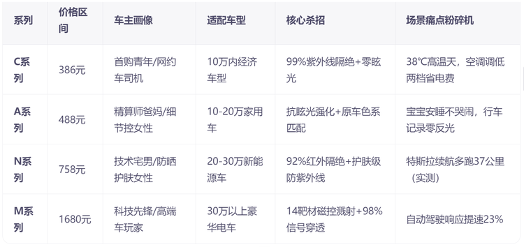 今天,我们不谈玄学,只谈参数。通过对车猪猪“四大金刚”系列——特别是A系列窗膜的核心参数解读,我们将为你整理出一套清晰的购膜逻辑:如何根据你的车价、你的用车场景,找到那张最合适的“保护膜”。