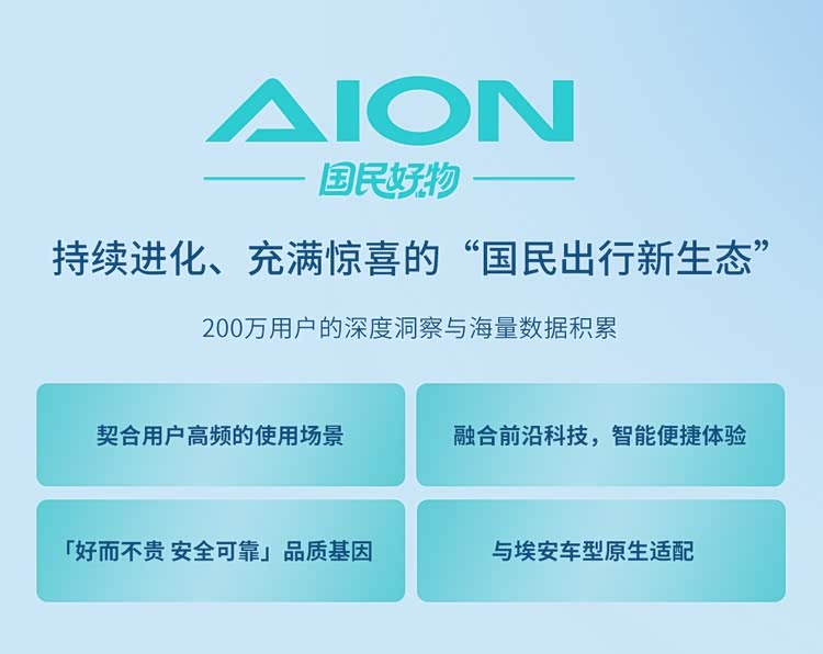 未来,埃安将以车为载体,持续深耕用户用车全生命周期,构建一个值得信赖的“车生活好物平台”;与用户一起,打造一个持续进化、充满惊喜的“国民出行新生态”。