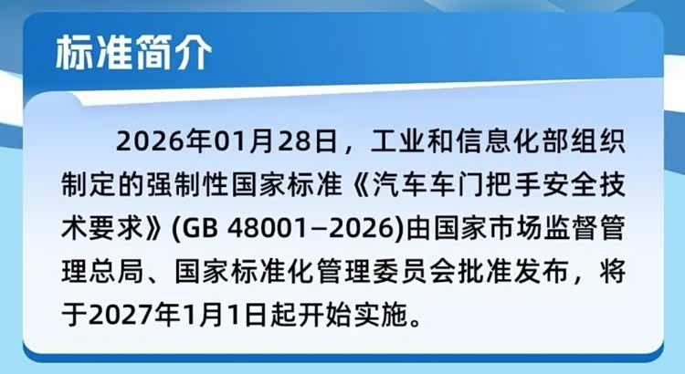 值得一提的是,这场事故不仅引发了行业对新能源汽车低压供电冗余的讨论,更是直接推动了监管政策的落地——2026年1月,《汽车车门把手安全技术要求》强制性国标发布,明确2027年起新车必须配备机械外把手,禁止纯电子开门方案。