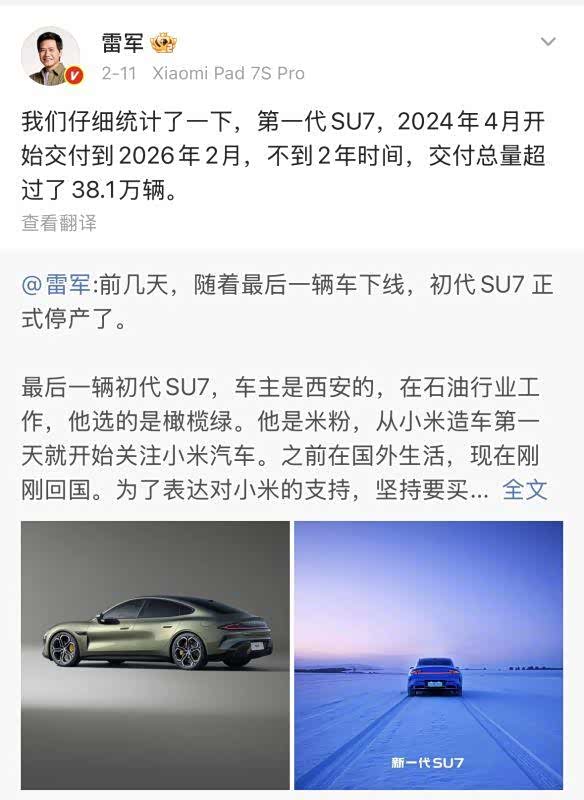 更让初代车主在意的是,初代SU7已于今年2月初正式停产,生产线全面切换至新一代SU7。这也意味着初代SU7的硬件迭代已基本终止,车主期盼的机械门把手升级,短期内只能寄望于第三方改装,或未来通过软件进行间接优化。截至目前,官方仍未就初代用户面临的安全体验差异给出明确回应,这也让不少早期支持者感到被“背刺”。