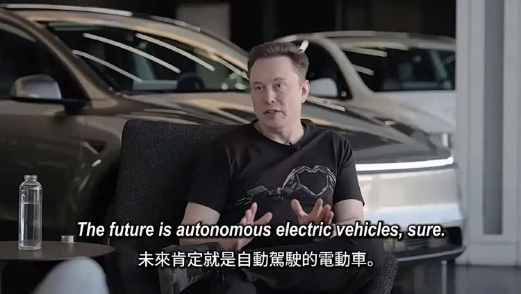 “就像十年前我预言的那样,未来任何非电动自动驾驶的车辆——比如你开的汽油车,必须自己驾驶。未来这会像骑马、用翻盖手机一样过时。这就好比现在还有人骑马,但早已不是主流,只是稀罕物;还有人用翻盖手机,但已不多见,这都成了小众玩意儿。所以未来既不会有燃油车,也不会有非自动驾驶的车辆,只有自动驾驶的电动车。”