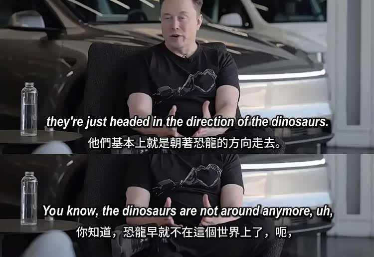 按照马斯克语出惊人的逻辑,还来了一波终极预测,称欧洲的汽车工业正在像“恐龙时代”那般开始消亡。