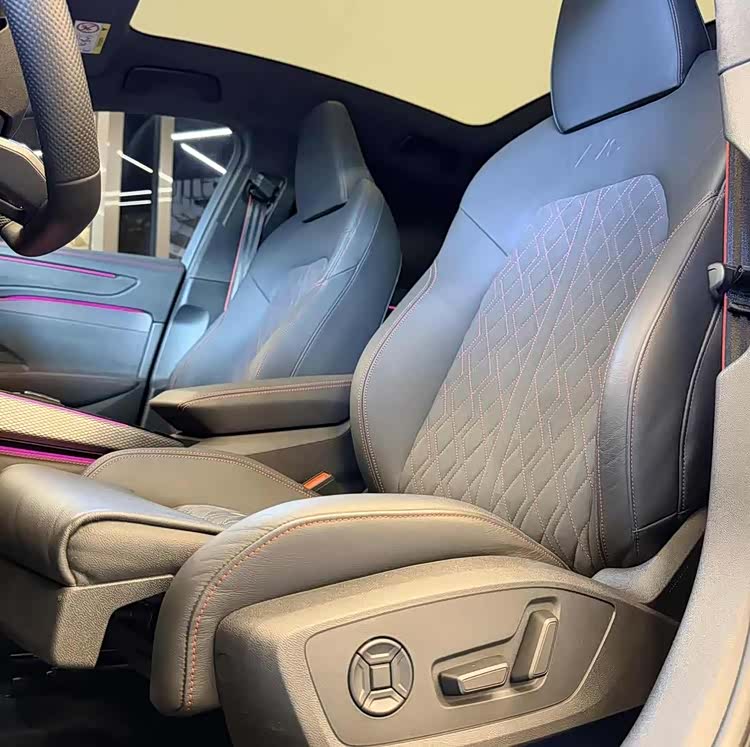 内饰是科技与豪华的完美融合。双平底方向盘立体感强,氛围灯营造出浪漫氛围,全景天幕让车内视野开阔。包裹性出色的座椅尽显运动风格。11.9英寸全液晶仪表、14.5英寸悬浮式中控屏以及10.9英寸副驾娱乐屏,再加上HUD抬头显示,科技感直接拉满。