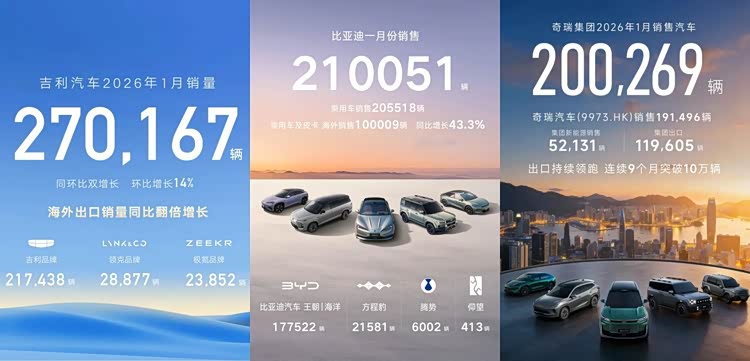 2026年1月,中国车市爆出一记重磅消息,吉利汽车以270167辆的月度销量,超过比亚迪的210051辆。