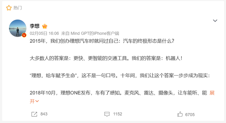 蔚小理中的理想,最近创始人李想也开始表示“汽车的终极形态是机器人”,即将推出的新一代理想L9也开始一口一句“机器人”,让人不禁想起了“汽车机器人——极越”。