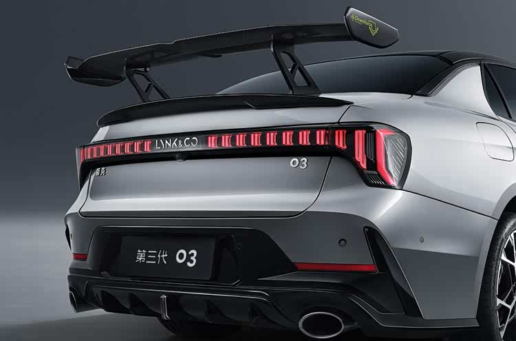 第三代领克03大尾翼版新增三段可调碳纤维尾翼,支持0°/8°/16°三段可调,侧部具有宁波国际赛道地图标识。尾部依然是领克03 2.0T车型标志性的双边双出排气系统。新车搭载Drive-E 2.0TD T5 Evo涡轮增压发动机,匹配爱信8AT变速箱,最大功率272马力,峰值扭矩400牛·米,0-100公里/小时加速时间6.5秒。
