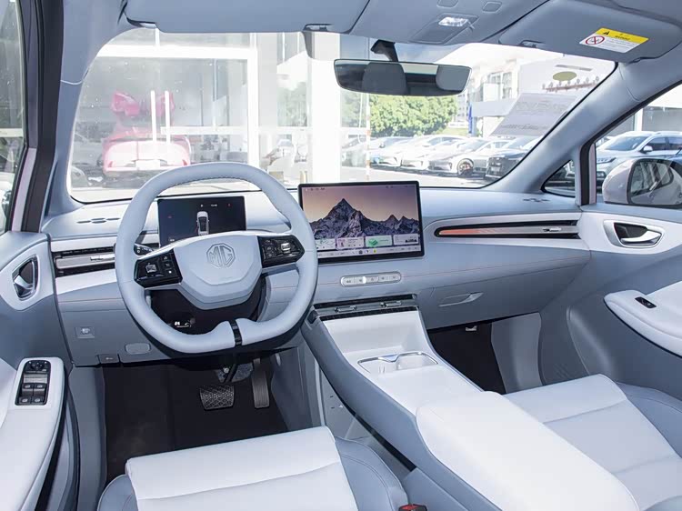 进入车内,MG4以实用为核心,内饰设计简约规整,虽大面积采用硬塑料材质,主打务实风格,但细节处的线条处理细腻,搭配皮质方向盘(中高配标配),提升了内饰质感。科技配置方面,新车入门版为7英寸+10.25英寸组合,中高配升级为12.8英寸甚至15.6英寸2.5K中控屏,中高配搭载高通骁龙8155芯片,车机操作流畅,支持语音唤醒、手机互联等功能,实用性拉满。空间方面,2750mm的长轴距让后排空间充裕,身高1.8米的乘客乘坐时,膝部空间仍有一拳余量,后排地台全平,三人乘坐也不局促。