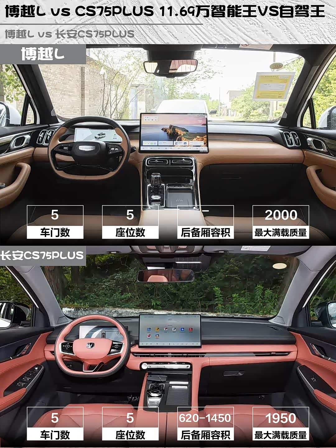 个人觉得博越L适合科技控,尤其是那套透明底盘对新手太友好;CS75PLUS更适合长途自驾,零重力座椅+三联屏让副驾彻底躺平。你们会选智能体验还是实用空间呢?