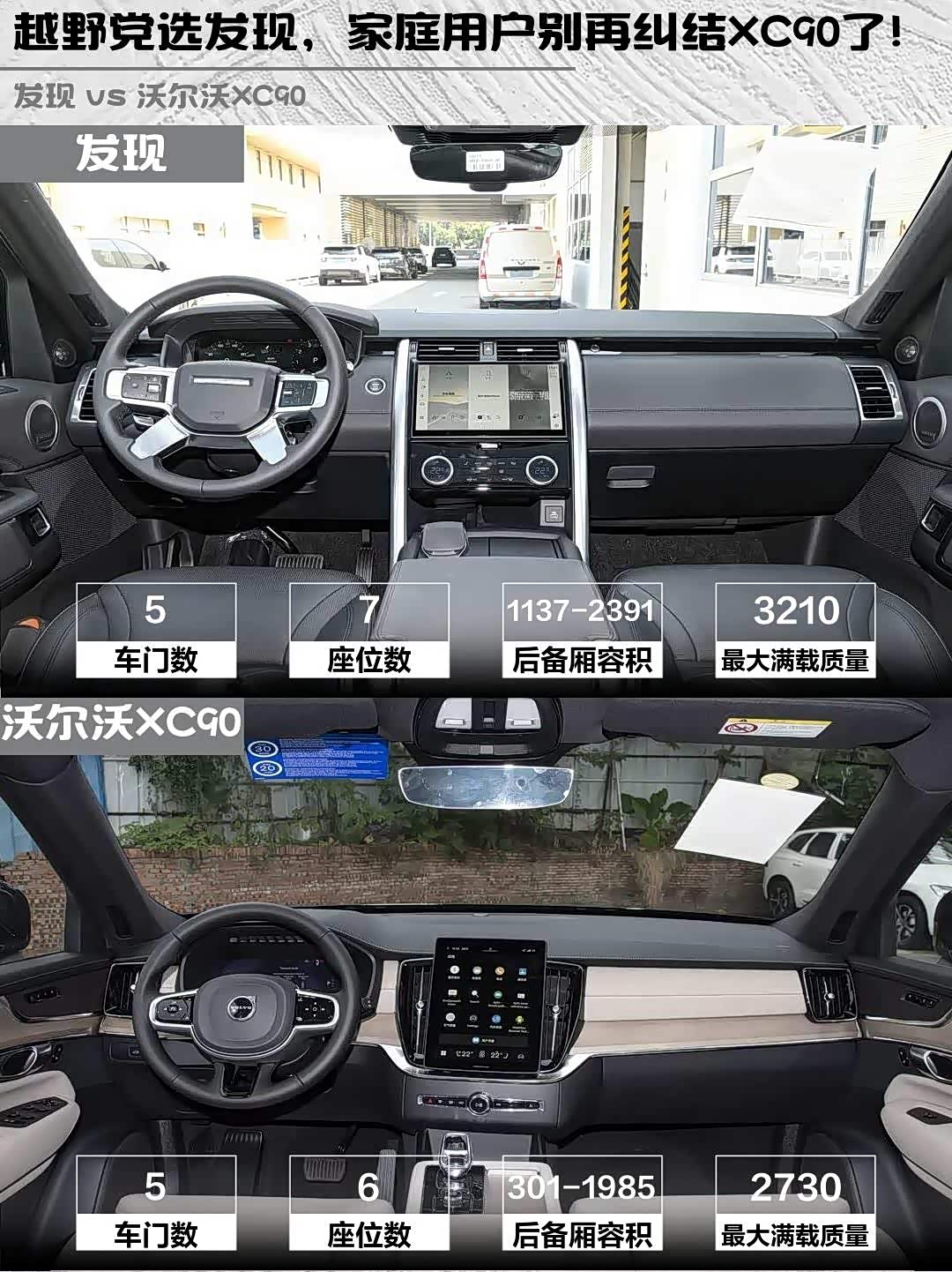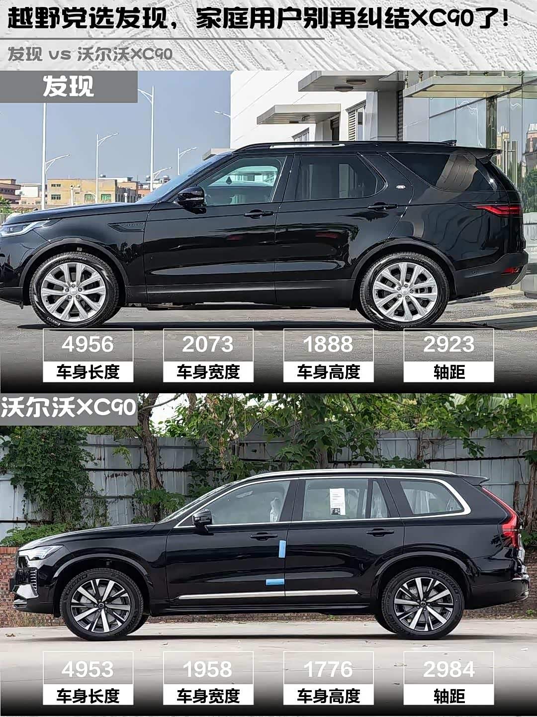 发现阶梯式车顶+蚌壳引擎盖硬派复古,升高底盘像陆地坦克;XC90雷神之锤大灯+悬浮车顶优雅耐看。个人觉得发现适合喜欢野性的,XC90更适合商务精英范。