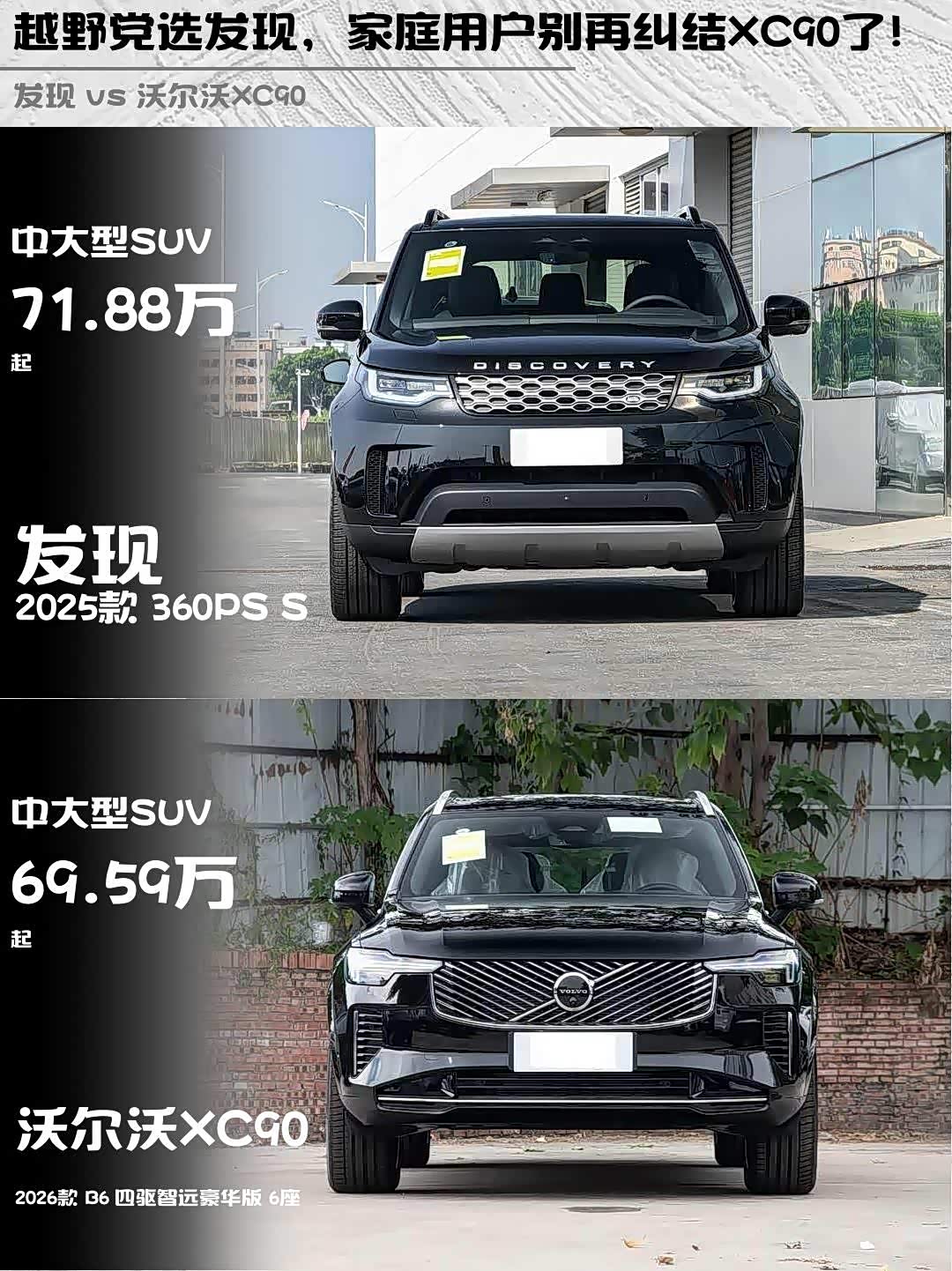 最近在纠结发现 2025款 360PS S和 沃尔沃XC90(参数|询价) 2026款 B6 四驱智远豪华版 6座的朋友看过来!深度对比这两台70万级豪华SUV,看完你就知道怎么选了👊