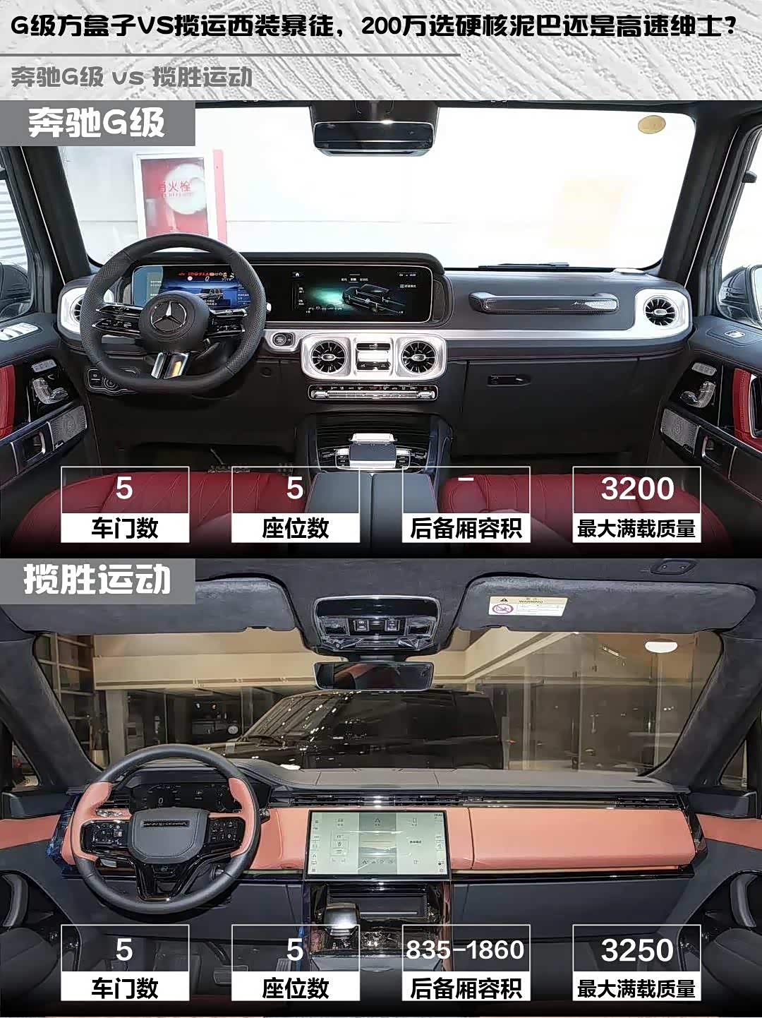 坐进车内,G 500的12.3英寸触控屏+怀挡设计保留机械感,副驾越野扶手超有仪式感。揽运的13.1英寸屏更大,四区空调+酒红真皮内饰更显英伦范儿。储物空间倒是半斤八两——门板都成了主力收纳区😂