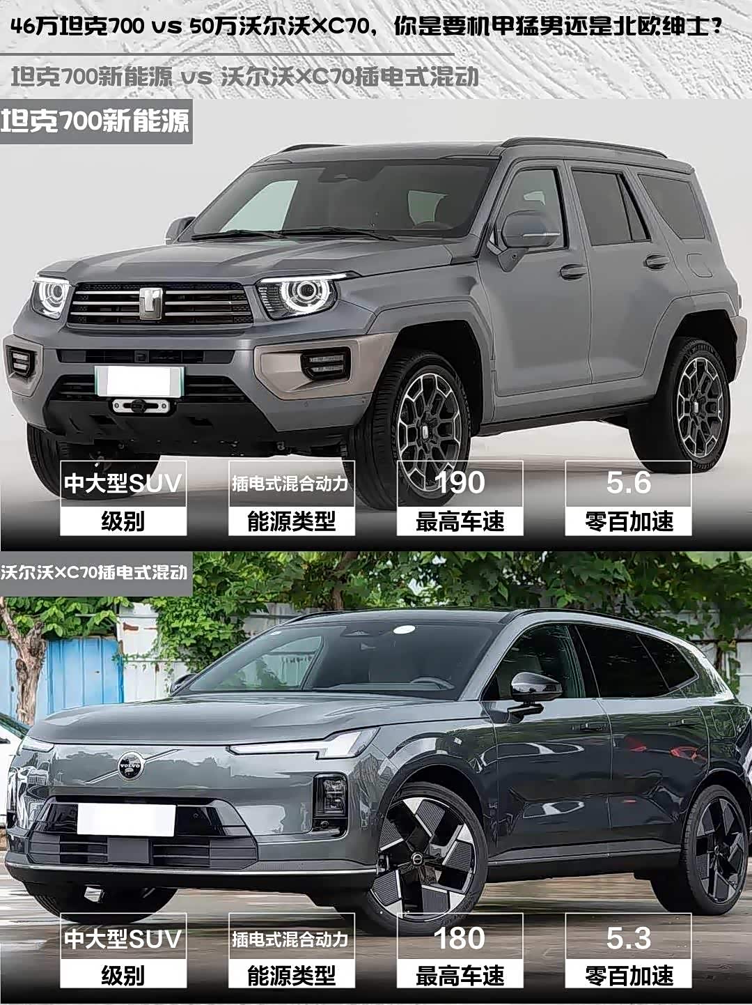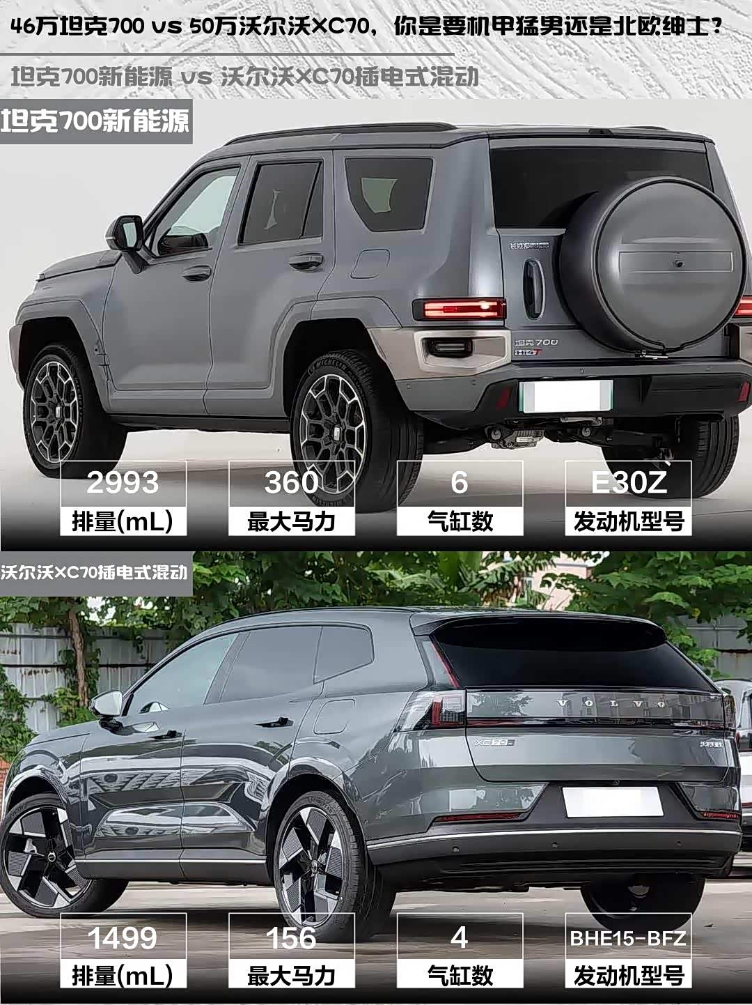 如果你经常玩越野/喜欢硬派风格,坦克700的机械素质和改装潜力绝对香;要是更看重城市通勤品质感,沃尔沃的续航和精致度会更合适。话说你们会选机甲猛男还是北欧绅士呢?