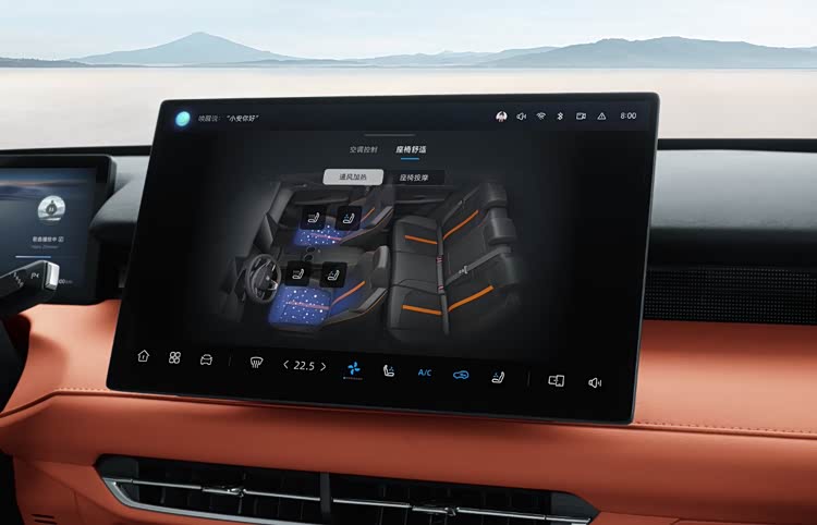 女王副驾,58度腿托——老婆累了可以把腿托起来,躺着追剧、小憩,比在家还舒服。前排座椅还带8点位8模式按摩,3档力度可调,长途驾驶再也不怕腰酸背痛。