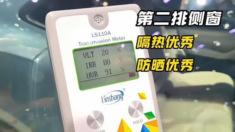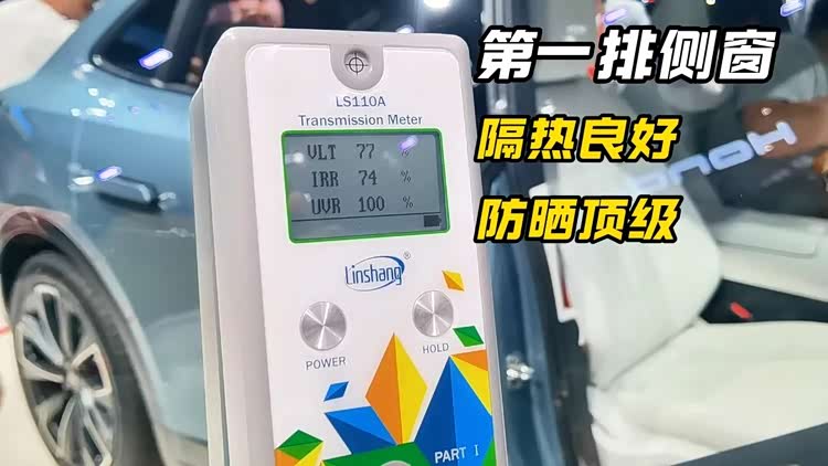 乐道L60 2025款第一排侧窗测下来,红外阻隔率(IRR)为74%,紫外阻隔率(UVR)为100%,隔热数据良好,防晒数据则是顶呱呱!不过透光率(VLT)只有77%,透光冗余还剩出7个百分点,给后续贴膜留的空间不大。