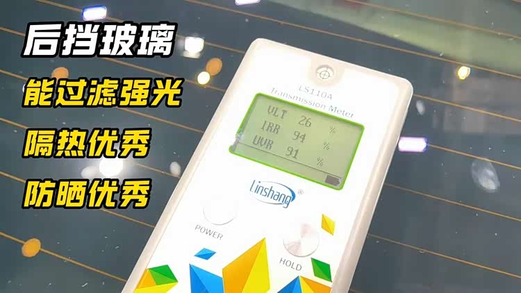 乐道L60 2025款后挡玻璃用料相当良心。28%的透光率(VLT)表明这块玻璃能够在夜间很好阻隔后车强光;红外阻隔率(IRR)为94%,紫外阻隔率(UVR)为91%,市面上后挡玻璃隔热防晒指数超90%的可是不多。