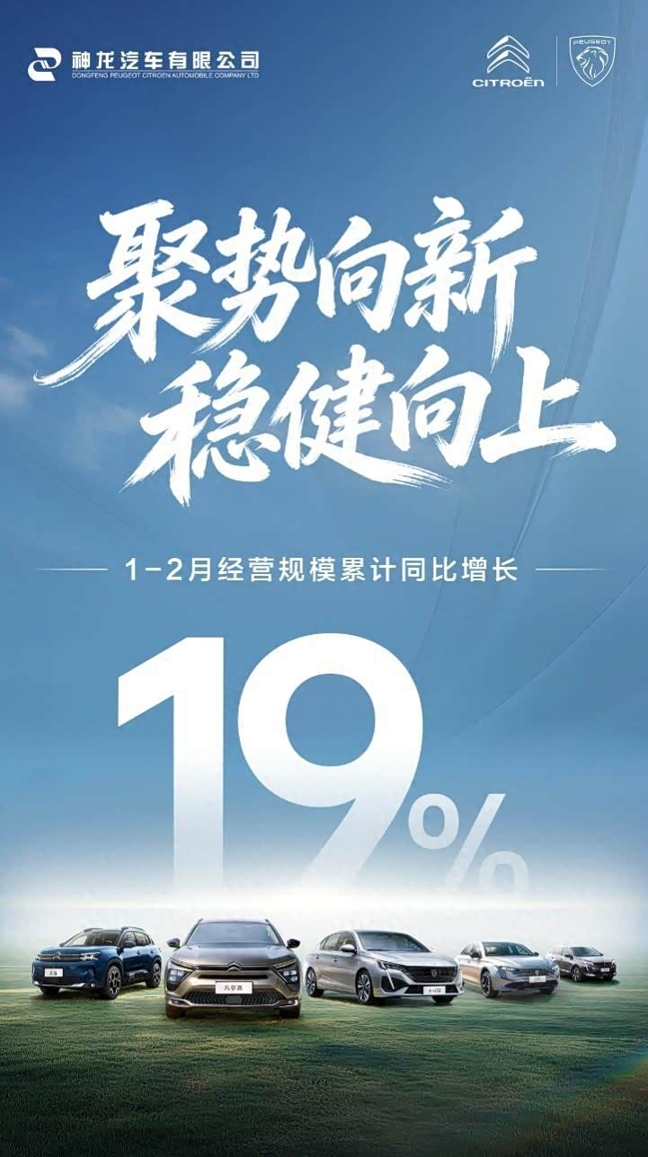 在刚刚过去的二月,尽管适逢新春佳节、传统汽车销售进入淡季周期,东风标致与东风雪铁龙却以一份逆势上扬的成绩单,为2026年奏响了“稳健向上”的序曲。最新数据显示,东风标致与东风雪铁龙1-2月经营规模累计同比增长19%。在春节假期有效销售时间大幅压缩的背景下,这一成绩的取得,不仅是市场对法系车信心的回归,更是双品牌“聚势向新”落地的有力注脚。