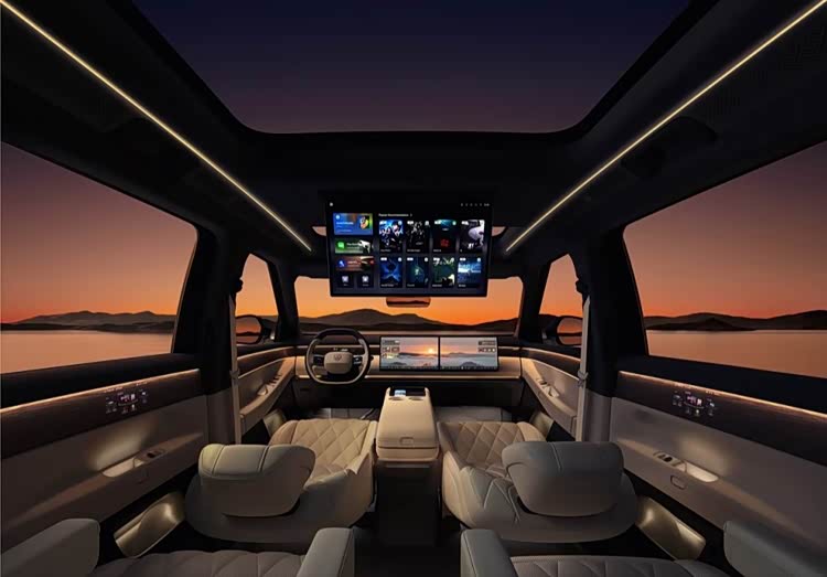 配置上,这款未上市的新车诚意拉满,内饰以“方圆合蕴”为设计理念,环抱式座舱很有质感,12.8米长的四层环舱氛围灯,光线柔和不刺眼,还有前排15.6英寸双联屏和后排21.4英寸可折叠吸顶屏,不管是驾驶还是乘坐,都能拥有不错的体验。更贴心的是,它搭载多模态AI大模型,能感知情绪、默契交互,智能辅助驾驶能覆盖高速、城市全场景,比理想L8的智驾配置更全面,也比智己LS9的交互更灵活,完全摆脱了大众以往“智能化不足”的标签。