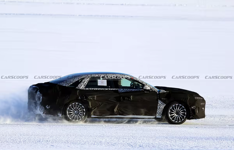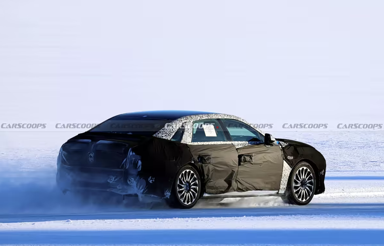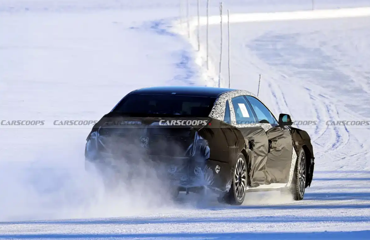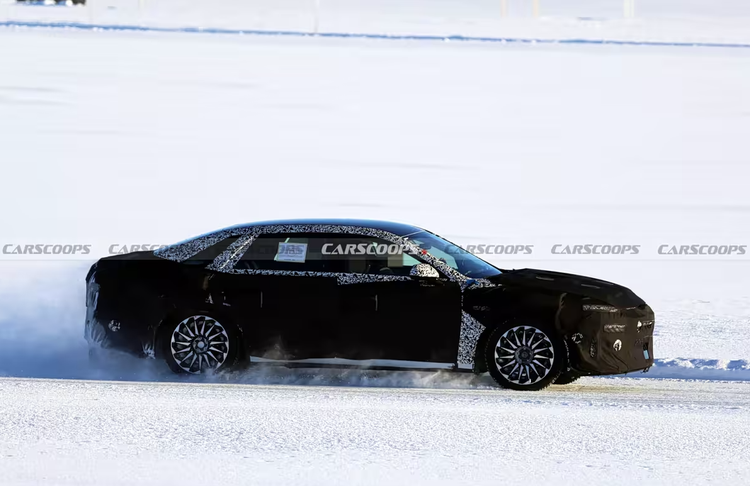 新车延续了雅尊家族修长的车身比例,尽管覆盖着厚重伪装,但整体轮廓依旧稳重优雅。C柱与D柱之间标志性的小窗得以保留,品牌标志性的“无缝地平线灯”似乎变得更粗,视觉冲击力更强。车身侧面轮廓基本延续现款设计,预计将换装全新样式的轮毂;车尾被积雪和伪装覆盖,推测后保险杠和尾灯组将进行重新设计以提升辨识度。