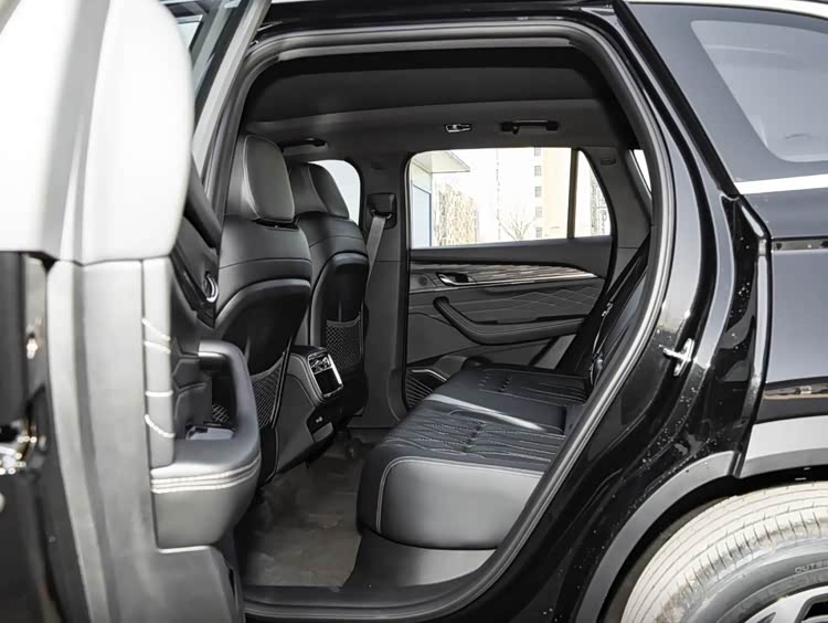 车身侧面线条规整流畅,车窗四周与侧裙处配备镀铬饰条点缀,搭配19英寸花瓣式轮毂,尽显豪华质感,隐藏式门把手与流畅的腰线相呼应,勾勒出沉稳大气的车身姿态。车身尺寸保持现款水准,长宽高分别为4770/1895/1689mm,轴距达2845mm,5门5座SUV布局,为车内提供宽敞的驾乘空间。车尾配备极光点阵贯穿式尾灯,与前脸灯光设计形成呼应,隐藏式排气布局契合家用定位,整体设计简约大气又不失细节。