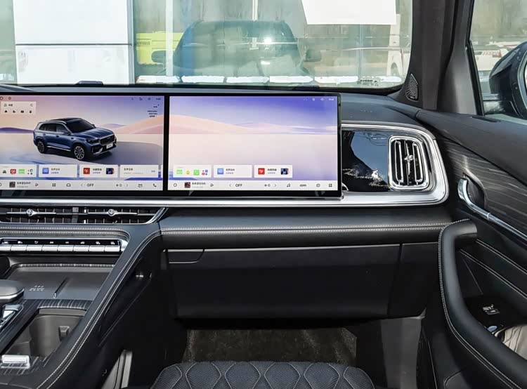 内饰方面,新车采用月影黑专属内饰配色,大面积采用皮质材料包裹,搭配镀铬饰条与木纹饰板点缀,质感细腻出众。座舱布局延续驾驶者导向设计,核心配备12.3英寸全液晶仪表与双14.6英寸悬浮大屏,组成智能交互矩阵,支持三指滑屏功能,主副驾内容可随心切换,大幅提升人机交互效率,同时搭载高通8155旗舰级芯片,为车机系统流畅运行提供强劲算力。