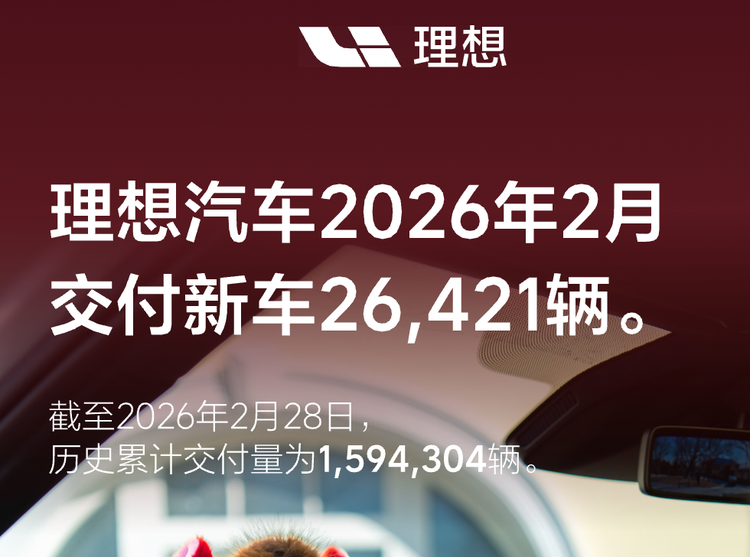 理想2月交付超2.64万辆新车!累计交付接近160万辆