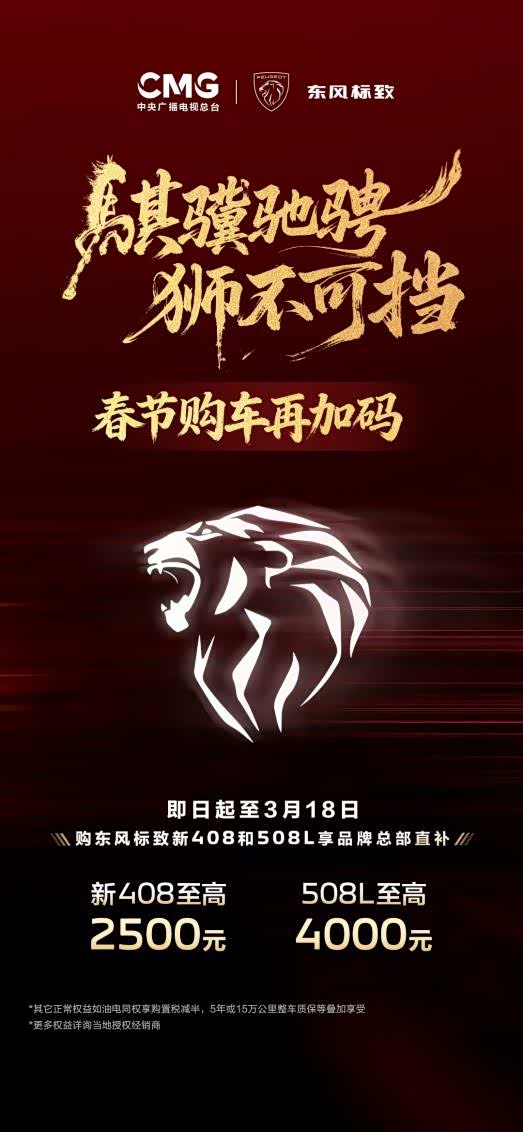 新春时节,万象更新。消费升级的时代,用户既要驾控乐趣,亦要品质出行。东风标致508L,以法式驾控旗舰之名,完美平衡性能与质感,回应新时代消费者的真实所需。如今,这份回应不止于产品,更延伸至购车体验——东风标致携诚意礼遇而来,以实实在在的购车福利,助力用户轻松升级座驾,畅享高品质出行生活。