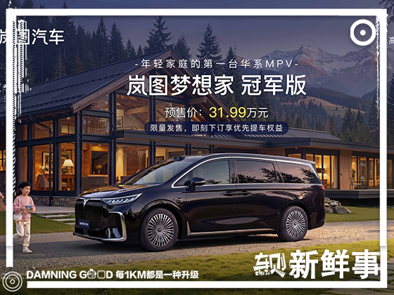 3月1日,30万级MPV市场唯一一台搭载华为乾崑智驾、舒适度全面拉满的智能家用MPV 岚图梦想家(参数|询价)冠军版正式开启限量预售,新车预售价31.99万元,略低于现款梦想家PHEV的32.99万元起售价,最快将于3月上市。