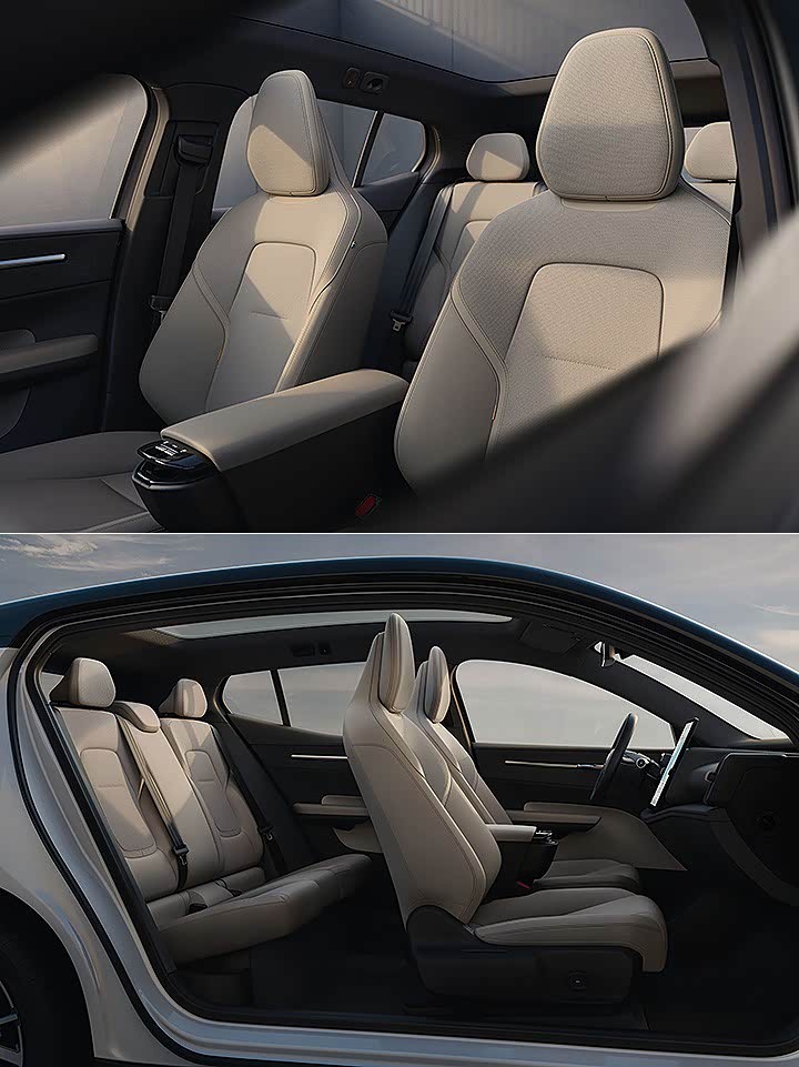 此外 EX30 新年款也同样推出 2 种全新内饰配色,分别为前述提及的「Black」黑内饰色、以及「Harvest」浅色内饰,其中「Black」黑内饰色,主要采用深黑色调,其采用平滑的 Nordico 座椅搭配略微对比的接缝,搭配自然深亚麻布料,营造出经典感受。「Harvest」浅色内饰则是呈现温暖浅色调美学,灵感来自斯堪地那维亚晚夏的夜晚。它包含浅色的再生纺织织物座椅、以回收材料如 PET 瓶制成的细腻对比 Nordico 座椅、优雅的深色亚麻装饰,以及黑色车顶棚,带来自然舒适氛围。
