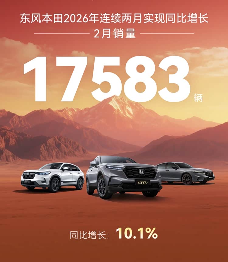 作为今日为数不多公布2月销量的合资车企,东风本田2月销量为17583辆,同比增长10.1%。从具体车型结构来看,CR-V销量超过半壁江山,达到了10102辆,同比去年增长了13.2%。