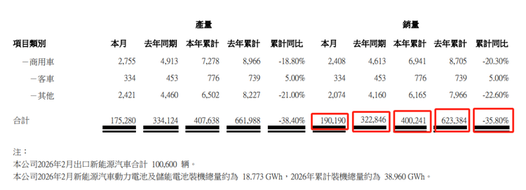 2026年1-2月份比亚迪累计销量400241辆,同比去年同期623384辆下滑35.80%。也就是说,进入2026年后,比亚迪汽车前两月表现有点差,不仅没有守住基本盘,而且出现大幅下滑,这样的市场表现后续还能挽回吗?奇瑞集团,2月销量160765辆,同比去年同期180,932辆下滑11.1%,环比1月份200,269辆下滑19.7%。这是奇瑞集团2026年首次出现同比环比全部下滑。