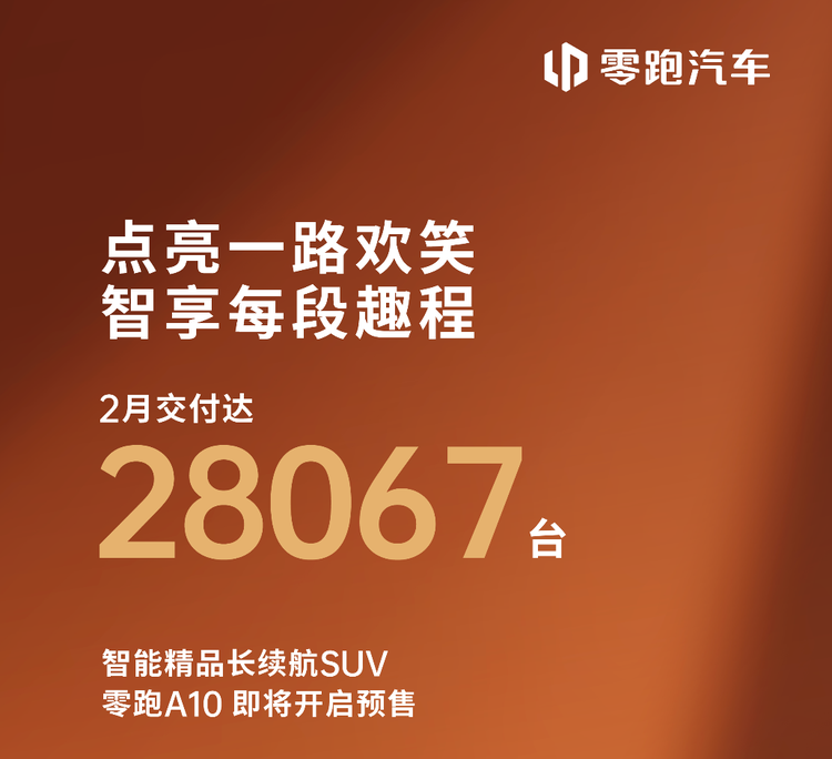 零跑汽车2月交付量达28,067辆,同样从3万+大关回落至2万+阵营。与2025年同期的25,287辆相比,同比增长约11%,在假期淡季中仍保持了稳健增长。