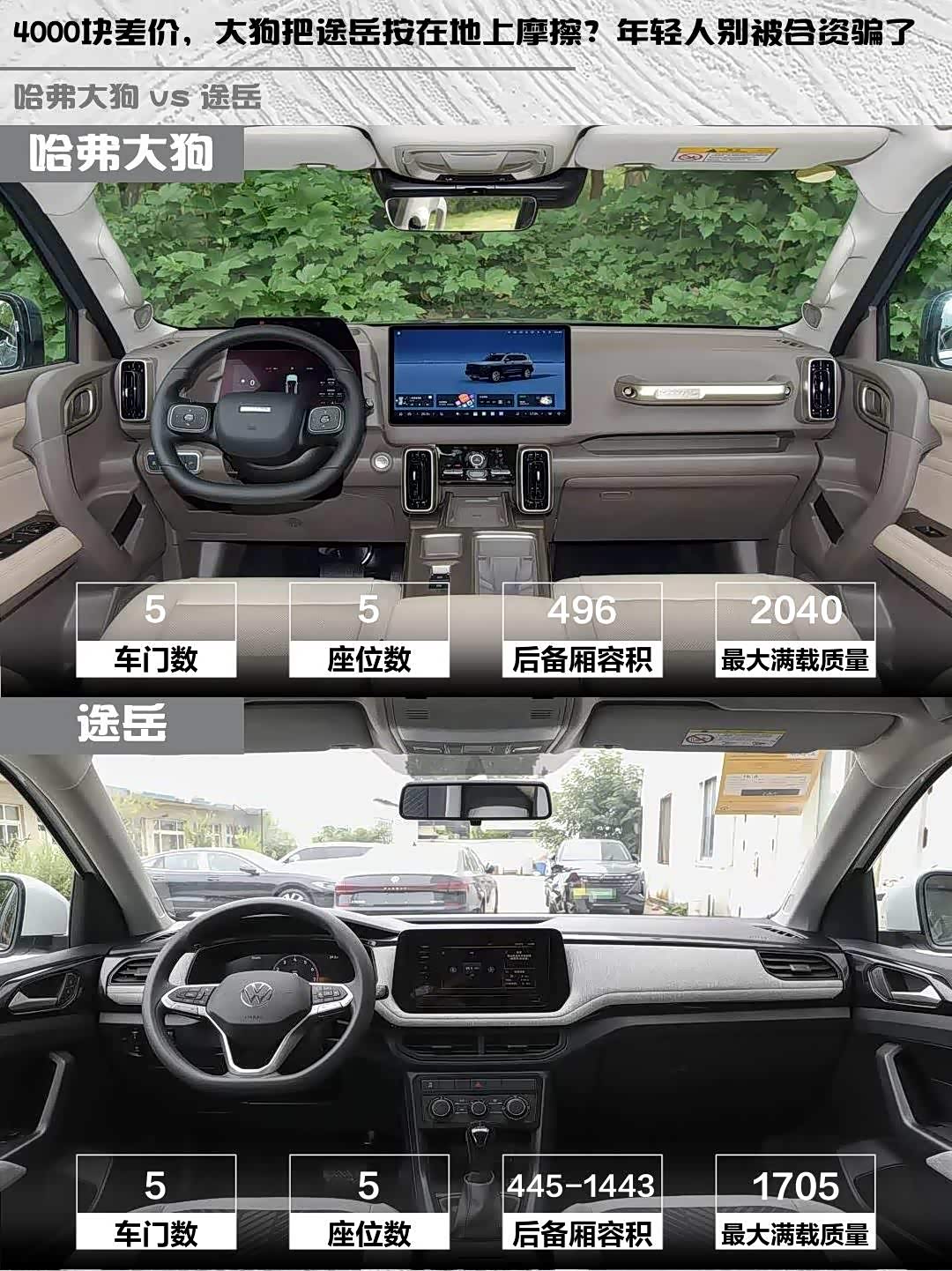 实测哈弗大狗后排能跷二郎腿(腿部空间两拳+),后备箱496L轻松塞下露营装备⛺️ 途岳后排坐三人稍挤,但后备箱扩展后1443L的容积扳回一城。不过大狗后排纯平地台+独立出风口,家庭出行舒适度完胜!