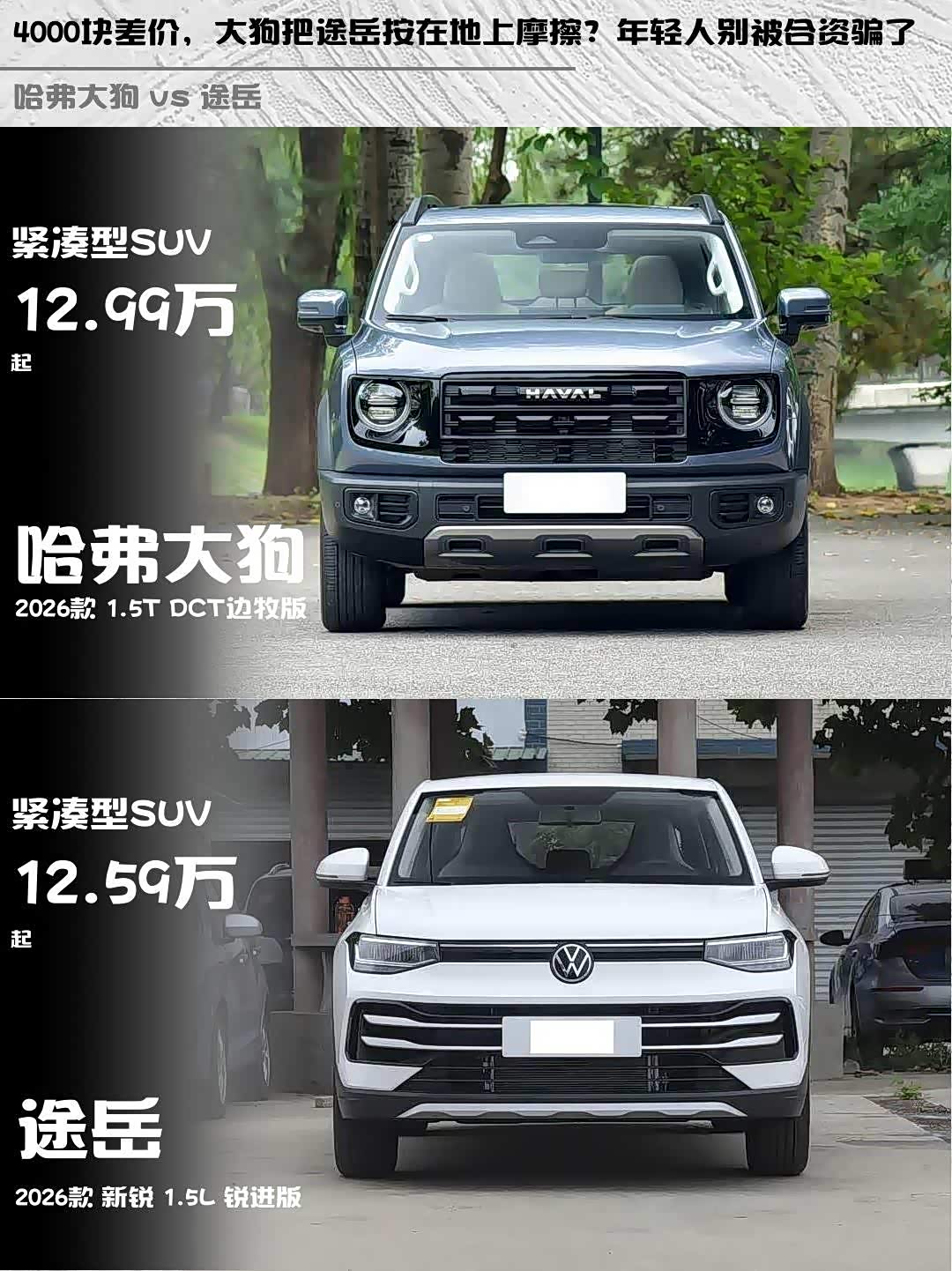 车家号·0浏览·2026-03-02 08:25 · 北京最近在纠结 哈弗大狗(参数|询价)2026款1.5T边牧版和途岳2026款新锐1.5L锐进版的朋友看过来!作为深度体验过两台车的车主,这篇对比绝对能帮你理清思路👇