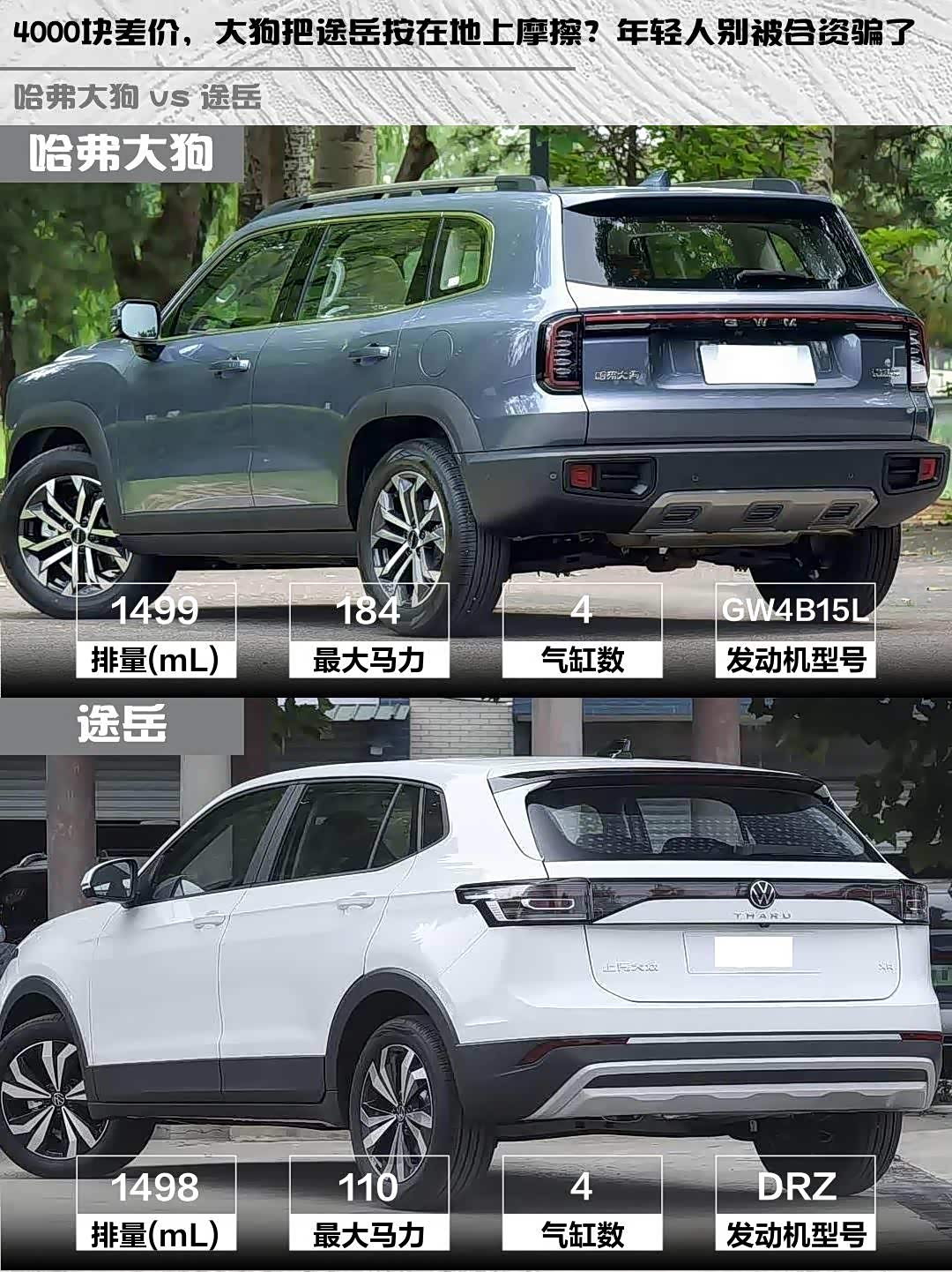 大狗1.5T+7DCT爆发184马力,红绿灯起步推背感明显,运动模式跑山超带感🏎️ 途岳1.5L自吸只有110马力,配6AT变速箱更平顺,但高速超车得提前预留距离。