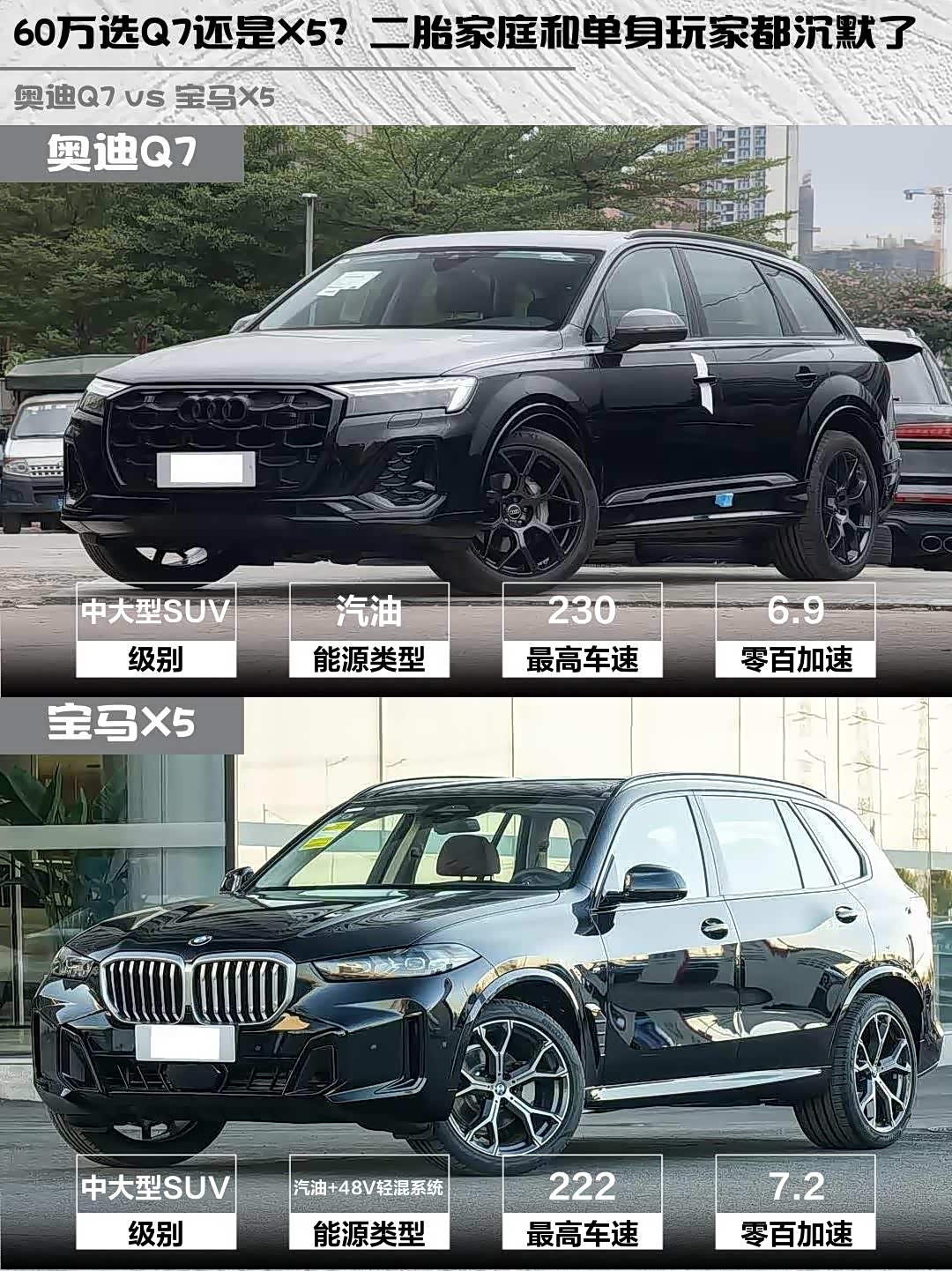 要品牌调性+全能表现选Q7,要驾驶激情+智能座舱选X5