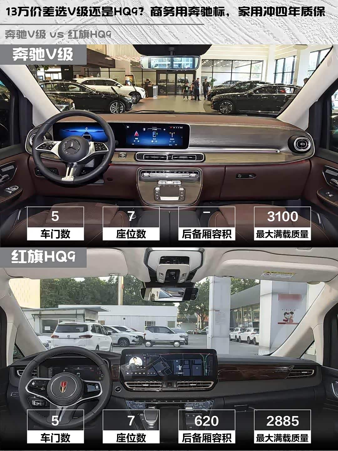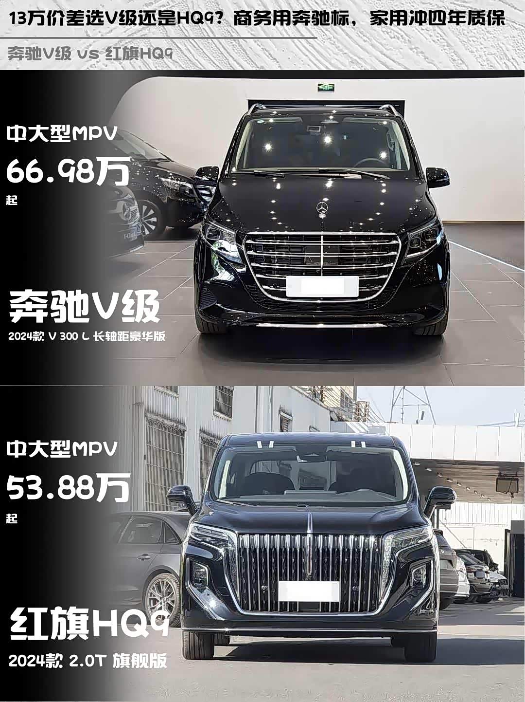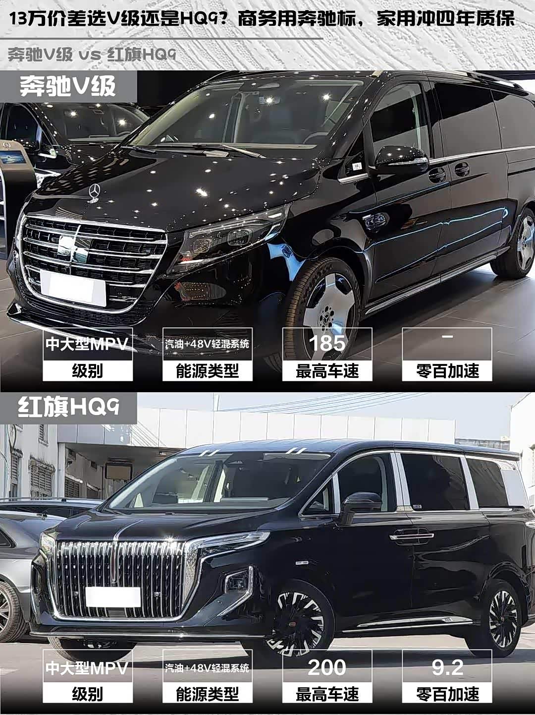 奔驰V级和 红旗HQ9(参数|询价)这两款豪华MPV到底怎么选?作为商务接待和家庭出行的双料选手,今天就从实际体验出发,给大家做个深度对比!🚗💨