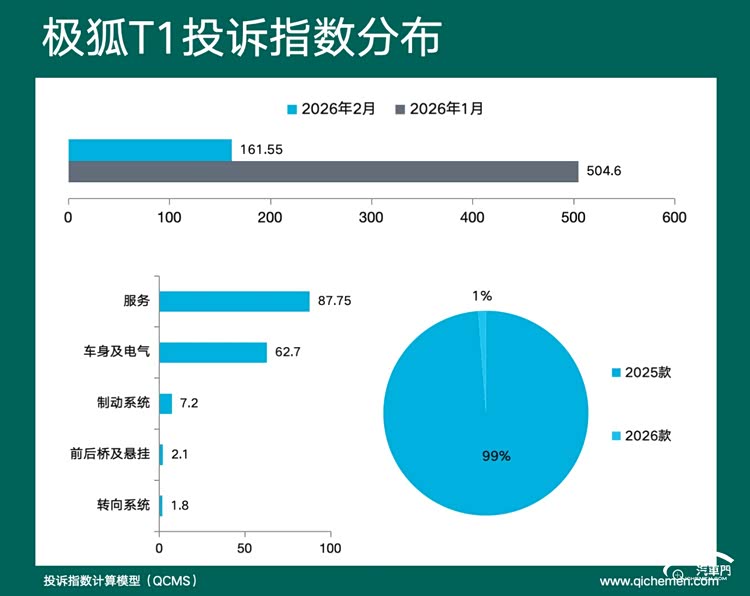 汽车质量投诉点评:本月极狐T1投诉指数也有67.98%的巨幅回撤,其中除受春节假期影响外,极狐对极狐T1无电机护板问题的积极解决也收到成效,据悉极狐正在通过4S点积极为极狐T1假装护板。除了电机护板问题外,本月购置税政策变动是极狐T1投诉的大头,延后推出的购置税兜底政策让1月1日至1月22日购车的车主十分尴尬,真心支持却换来错失3000元补贴,极狐如无补救错失难免会让车主心寒。