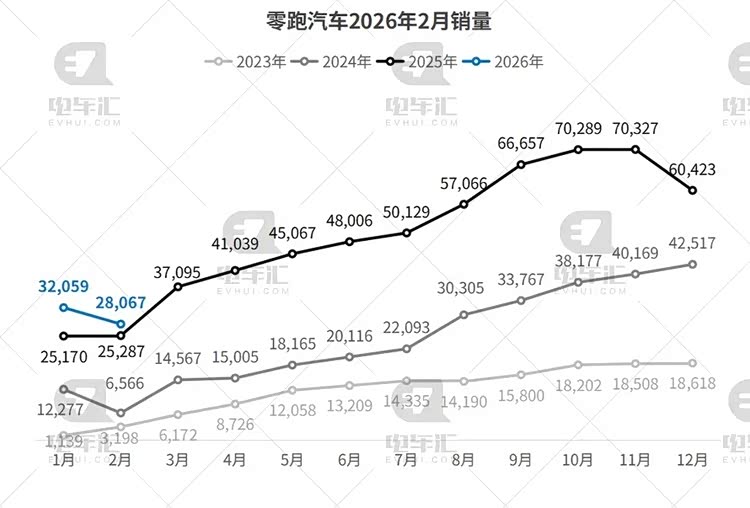 零跑汽车2月销量28,067辆,环比下降12.5%,但同比增长11%;1-2月累计交付60,126辆,同比增长19.2%。新车方面,LEAP3.5架构下的新车,定位十万级的智能精品长续航SUV——零跑A10即将开启预售。