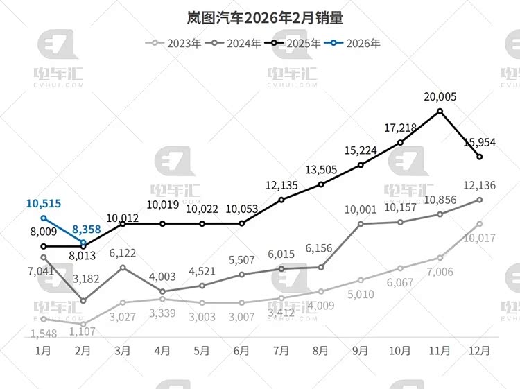 岚图汽车2月销量8,358辆,环比下降20.5%,同比增长4.3%;1-2月累计销量18,873辆,同比增长17.8%。岚图汽车预计于3月19日在香港联交所主板正式挂牌上市,或成央国企高端新能源第一股。