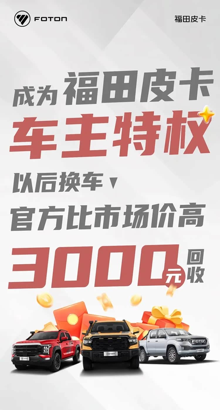 此次政策的推出,是福田皮卡深耕用户需求、升级客户服务的重要举措,未来,依托持续放宽的皮卡政策与不断完善的用户服务体系,福田皮卡将继续让每一位车主,都能在用车、换车的全生命周期中,尽享安心与实惠。