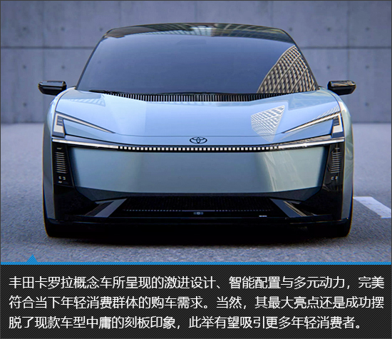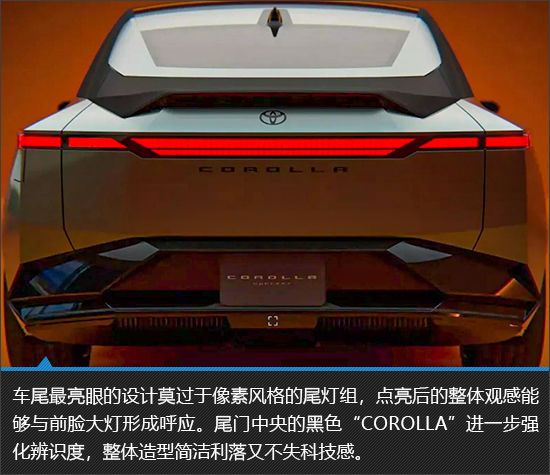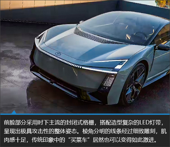 丰田卡罗拉概念车在外观设计上实现了全面突破,成功摆脱长期以来的温和家用形象,转而强调更具视觉冲击力的年轻化设计与未来感风格。车身线条十分激进,大量融合新能源车型主流设计元素,灯光系统颇具记忆点,完美展现了丰田在设计方面的大胆创新。虽然目前还不能确定未来量产版本的全新卡罗拉会保留多少概念车的相关元素,但是这份敢于探索与积极尝试的勇气,依然值得肯定。