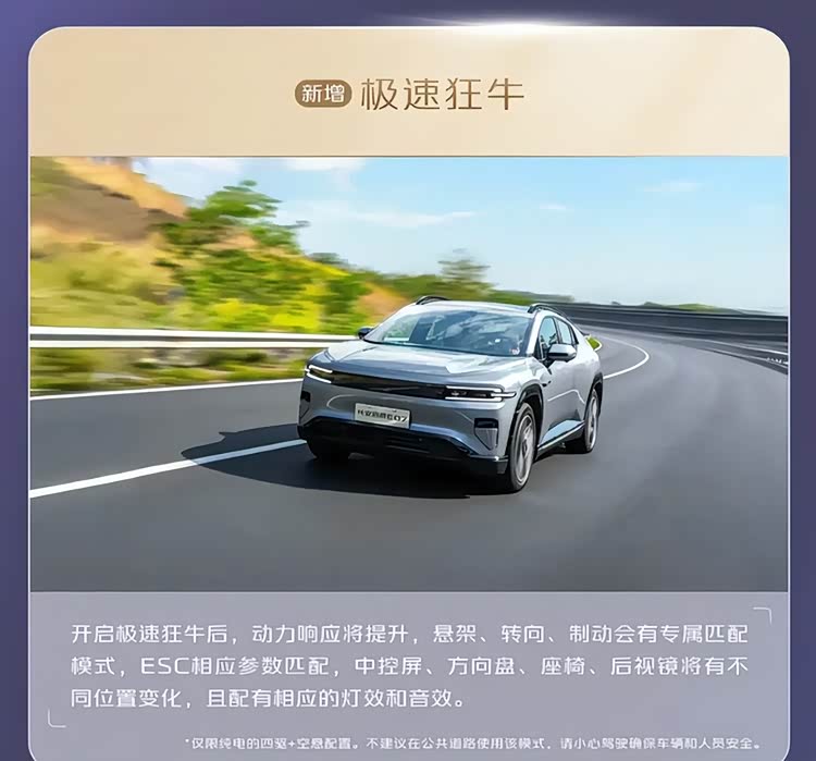 春节返程高峰,高速路上少不了超车变道。OS 1.1.0带来的“极速狂牛模式”,让不少车主直呼“真香”。在该模式下,整车的动力响应显著提升,悬架、转向、制动都进行了专属匹配。开启后电门响应异常跟脚,超车时信心倍增。配合相应的灯效和音效,枯燥的返程长途也变得有趣起来。