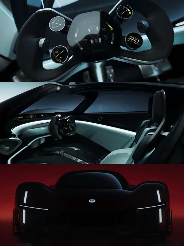 概念车呈现出了未来小米的电动超跑雏形。理论上4.1的空气动力学效率、0.29 Cd的风阻系数,同时能产生-1.2下压力——小米汽车认为风阻和下压力之间的平衡,才是电动超跑的未来。