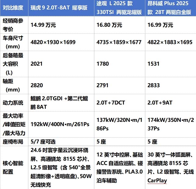 对比结论:瑞虎9耀享版更胜一筹,奇瑞双车覆盖多元用车需求