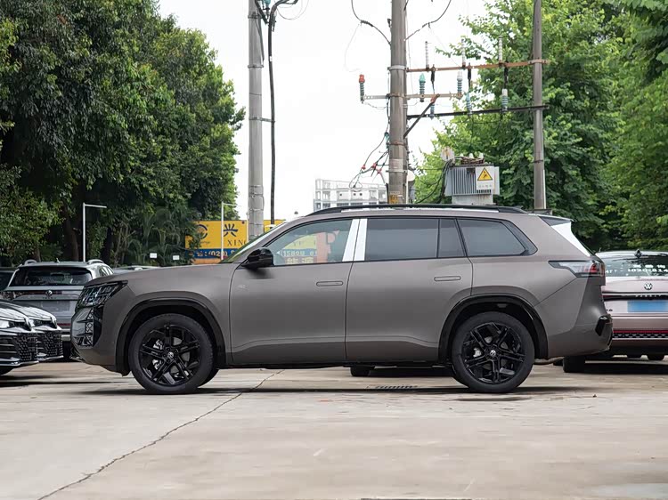 再来看车身侧面部分,车身侧面延续了大众家族化的平直线条设计,5158mm的车长与2980mm的轴距,让整车姿态修长而稳重。侧窗下部线条在C柱与D柱之间不再上扬,搭配悬浮式车顶设计,视觉效果更接近奥迪Q6的豪华感。隐藏式门把手不仅降低了风阻系数,还配备电磁开关技术,在-30℃低温环境下仍能正常开启,解决了北方用户的冬季用车痛点。21英寸双色大轮毂与车身比例协调,既提升了通过性,又为沉稳的车身增添了一丝灵动。